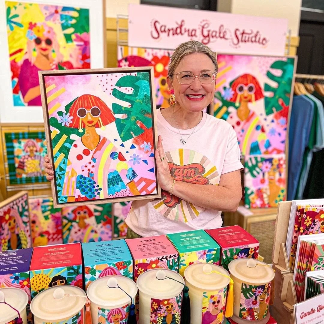Since then, Sandra Gale Studio has grown into a colourful world of art, products, and connection. I’ve exhibited at national art fairs, stocked shelves across Australia and New Zealand, and created pieces that now live in homes from Adelaide to Queensland and beyond.