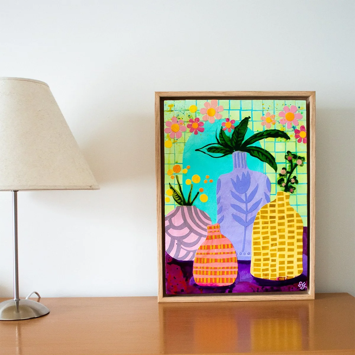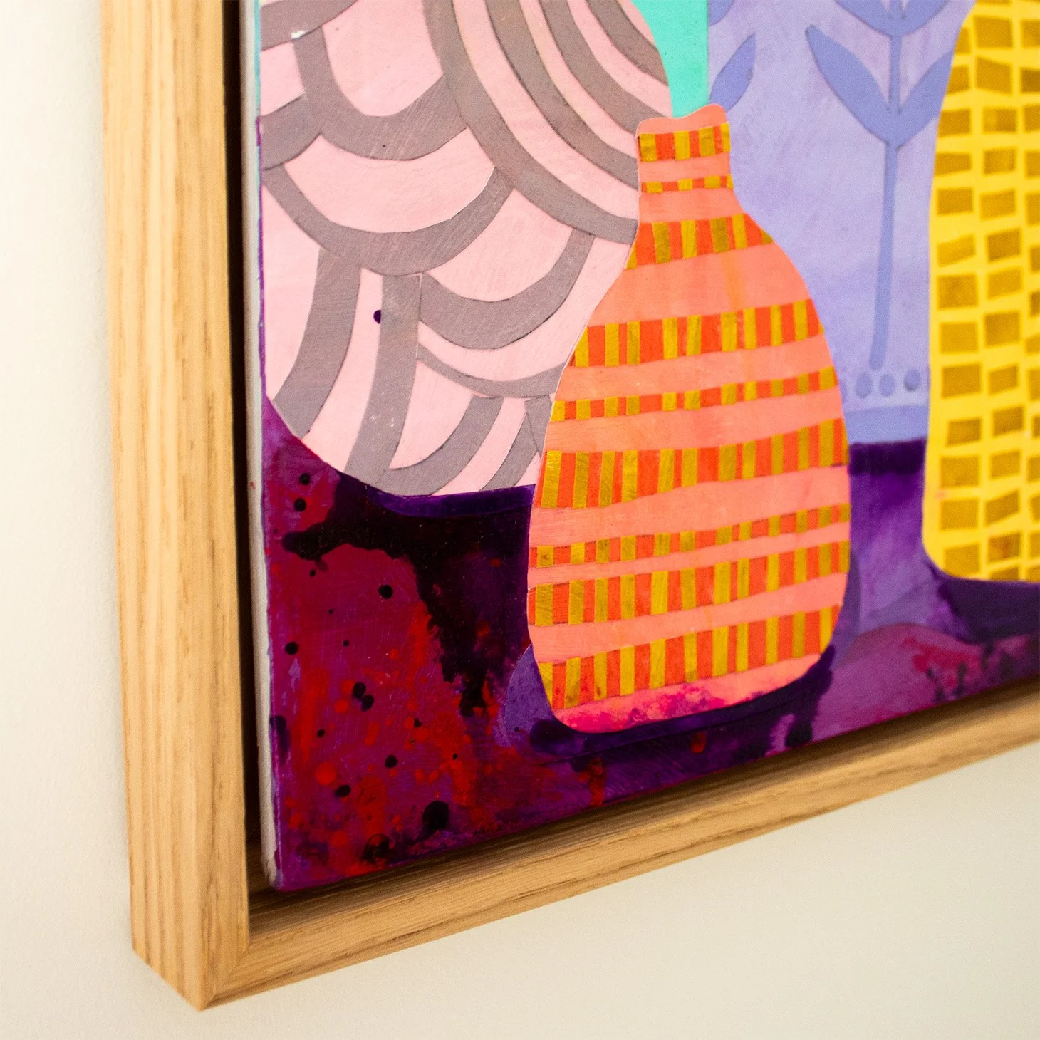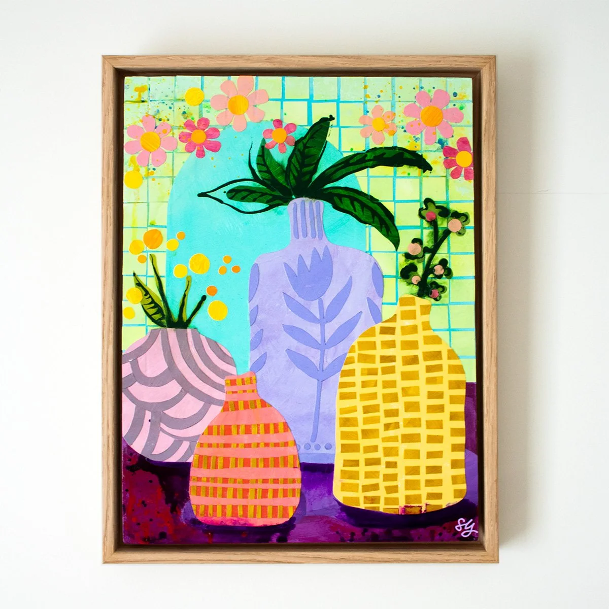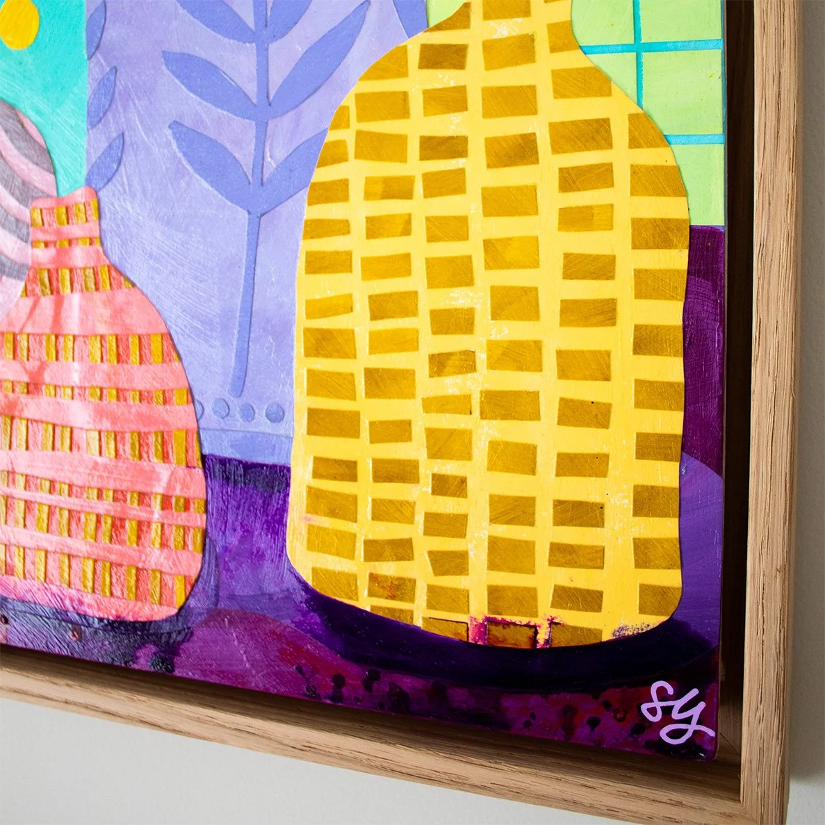 Original mixed media collage on MDF board, ready to hang in a hand-painted up-cycled frame.